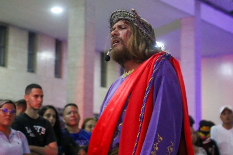 La caída bajo el peso de la cruz, el encuentro con Simón de Cirene, la Verónica que ofrece su paño: cada escena fue un poema visual y sonoro que despertó en la multitud una empatía profunda, un reflejo de las propias cargas y gestos de bondad que habitan en cada ser humano.