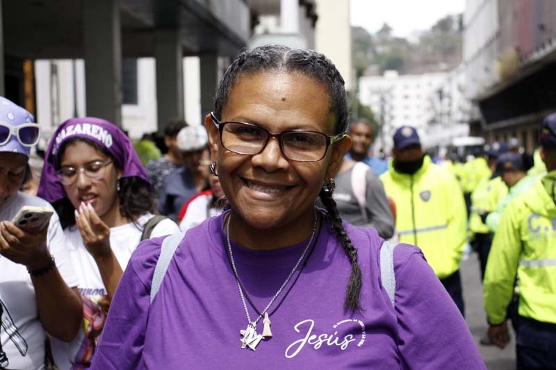 Llegada desde la ciudad de Valencia la devota Marifex Parra, se mostró emocionada al participar por primera vez en la procesión del Nazareno de San Pablo en Caracas. “A pesar de la cantidad de gente que hay, me parece que hay mucha ordenanza y la cola fluye bastante”, compartió.