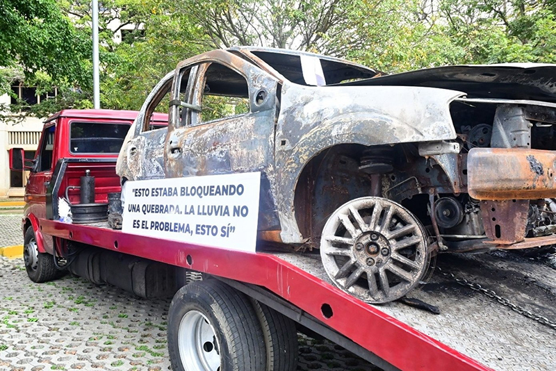 "Le pedimos a nuestro pueblo conciencia. La lluvia no es el problema, el problema es lo que arrojamos a las quebradas; hemos sacado hasta neveras y restos de vehículos que trancan el flujo del agua", advirtió Meléndez.
