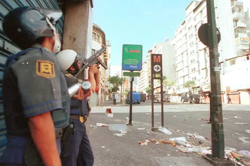 La extinta Policía Metropolitana reprimiendo a los manifestantes.