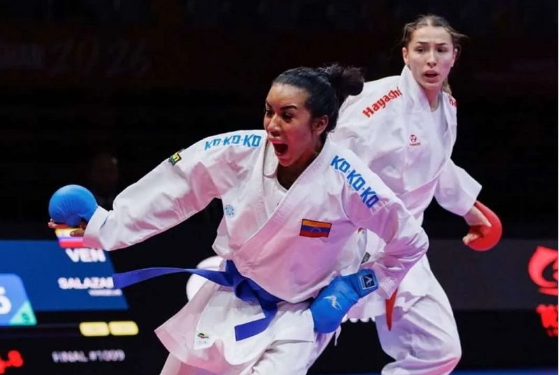 12/04/26.- La karateca venezolana, Yorgelis Salazar, sigue demostrando que está en la élite del deporte mundial, tras alcanzar la medalla de oro en la Premier League de Karate One.