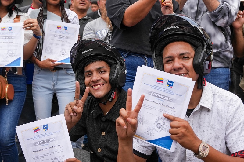 El evento, que se desarrolló en la parroquia 23 de Enero, no solo se limitó a la entrega de certificados, sino que se entregaron cascos de protección a los motorizados presentes y el Servicio Administrativo de Identificación, Migración y Extranjería (Saime) participó activamente facilitando la tramitación de cédulas de identidad.