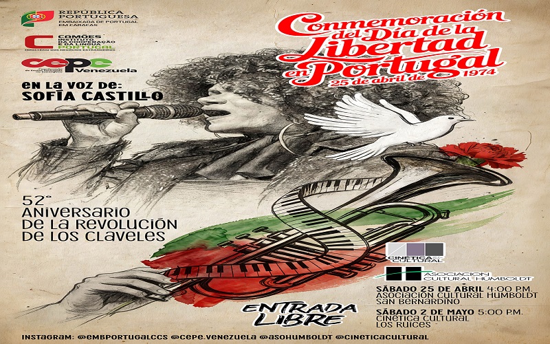 21/04/26.- La Embajada de Portugal en Caracas conmemora este sábado 25 de abril el 52 aniversario de la Revolución de los Claveles, con una programación que enlaza historia, comunidad y creación compartida. La iniciativa se realiza en alianza con el Camões Instituto da Cooperação e da Língua IP., (CEPE) Venezuela, la Asociación Cultural Humboldt y Cinética Cultural.