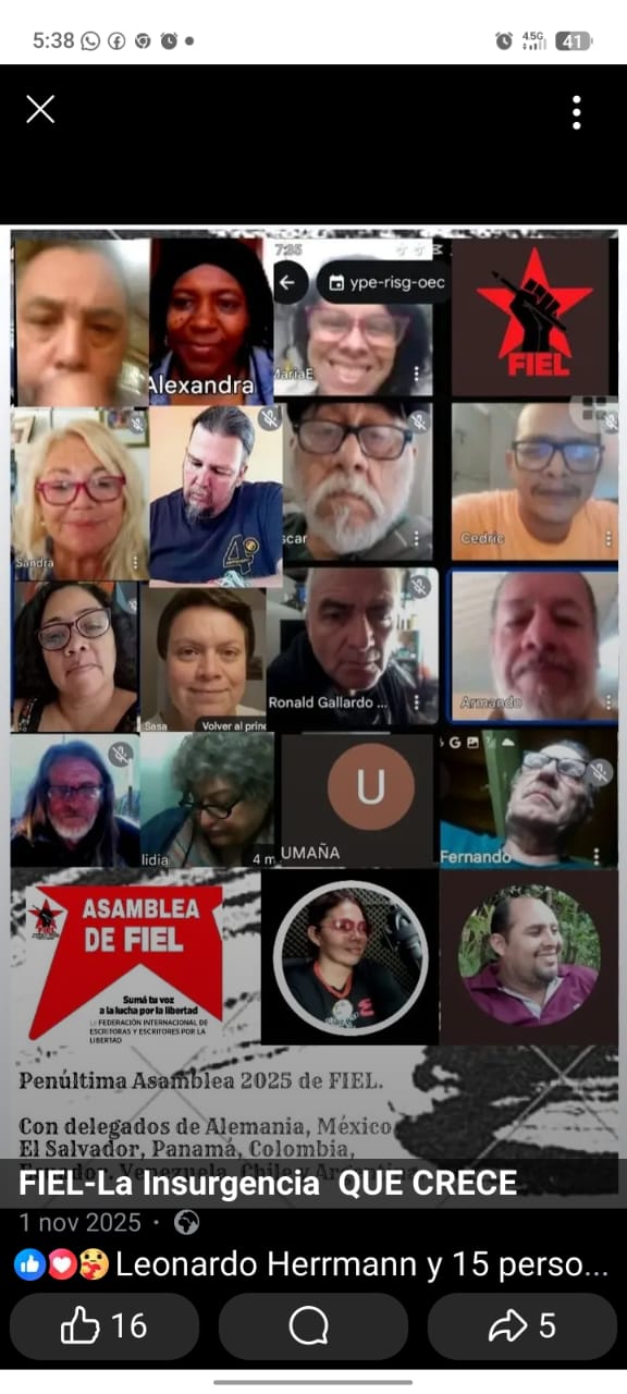 LH: La Federación Internacional de Escritoras y Escritores por la Libertad es una organización político-cultural antiimperialista que lucha junto a los pueblos por la liberación de todas las cadenas que los oprimen. La cultura es una trinchera estratégica donde se libra lo que Fidel definía como batalla de ideas; es decir, la confrontación del agónico imperio de la muerte y el inexorable amanecer igualitario de la humanidad. En esa batalla de fuerzas antagónicas y contradictorias, lo viejo se niega a morir y lo nuevo nace con la fuerza del amor y la lucha de los pueblos. Por eso el imperialismo está más agresivo, más sanguinario, más criminal y más peligroso, porque es consciente de su debilidad estructural y de su irreversible debacle. Su violencia en la fase terminal de su modelo de acumulación se traduce en todos los terrenos, incluso en el simbólico. El lenguaje del odio y la cultura del odio son propios de la construcción del relato fascista. Frente a esto, nosotros como FIEL impulsamos el internacionalismo solidario como una forma de unidad de los trabajadores de la cultura y sus pueblos. Planteamos que es urgente articular la insurgencia cultural como un arma de confrontación artística de los trabajadores de la cultura contra la versión falsificada del imperialismo, el rescate de la memoria colectiva de los pueblos y la formación de un artista integral y consciente de su pertenencia a la clase trabajadora y al pueblo. Es decir, hay que romper con aquella visión elitista burguesa del "artista" como un bufón al servicio de la oligarquía y de su arte como un adorno o un lujo aristocrático. Debemos construir un trabajador de la cultura revolucionario que rompa las cadenas y marche hacia la liberación, con su pueblo en las calles.