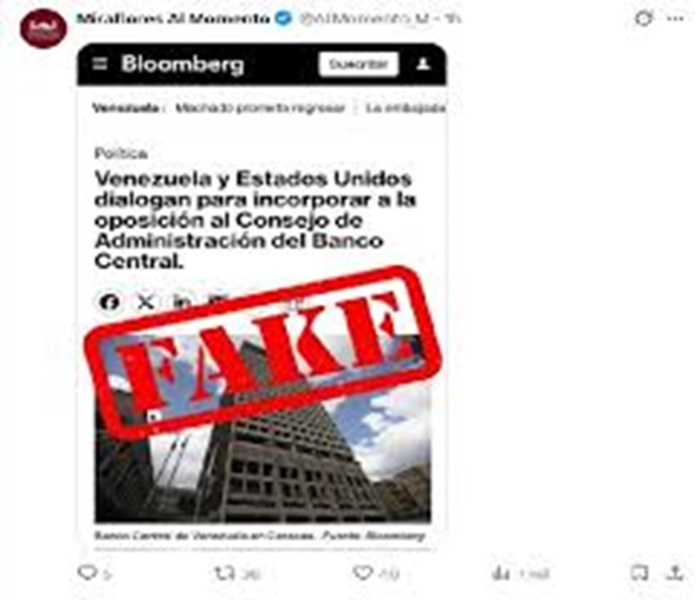 A través de la cuenta institucional Miraflores al Momento, el Gobierno publicó que la información atribuida al portal Bloomberg no se corresponde con hechos verificables. En el mensaje difundido en la red social X, se aclaró que el contenido difundido por ese portal no forma parte de ninguna iniciativa oficial.