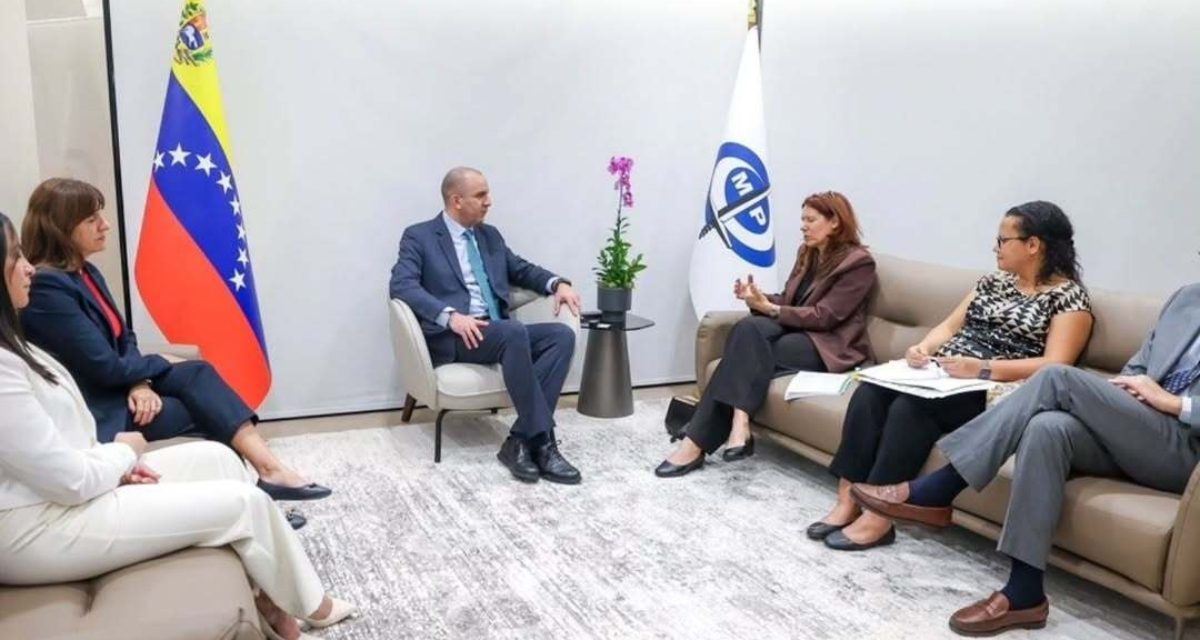 28/04/26.- Con el objetivo de afianzar la cooperación institucional, el fiscal general de la República, Larry Devoe Márquez, sostuvo una reunión de trabajo con la jefa de la delegación del Comité Internacional de la Cruz Roja (CICR) en Venezuela, Valérie Aubert, en la sede del Ministerio Público.
